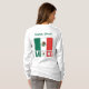 Personalized women's long sleeve t-shirt featuring the Mexican Flag, in green, white, and red, with the word MEXICO below in a design that follows the flag. You can add a name in the space provided for a special touch, in green letters. Design shows on front and back of tee. Great for celebrating family reunions, gift for travelers, and heritage gifts. Wonderful for celebrating Cinco de Mayo. Share your culture, heritage and ancestry.