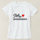 The personalized Mrs. shirt design with a modern, elegant script and red heart accent can be personalized with the bride's last name. Makes a great wedding gift for the honeymoon!