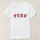 Verifique para fora este t-shirt de Peru! É você de Peru? Você tem um amigo ou um membro da família que amem Peru? Em caso afirmativo, este t-shirt da "bandeira" é exatamente o presente que você está procurando! As características de design "Peru" na rotulação vermelha arqueada na pia batismal clássica da faculdade.