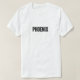 A disciplined typographic statement built on restraint. “PHOENIX” is rendered in bold, condensed sans-serif lettering, centered with architectural balance and printed in flat black ink. A subtle desert-grain distress introduces texture without noise—quiet wear, not spectacle. No graphics, no effects, no narrative clutter. Just form, weight, and presence. Designed to read clean from a distance and hold interest up close.