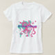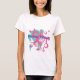 Camisa com a "fisioterapia" escrita. Tríade das cores: violeta, azul e rosa