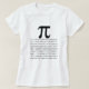 Símbolo grego Pi "Bisto" com o seu valor calculado vários números após o ponto decimal de uma camisa escura. Pi (letra grega "em") é o símbolo utilizado na matemática para representar uma constante — a relação entre a circunferência de um círculo e o seu diâmetro — que é aproximadamente 3,14159. Pi foi calculado para mais de um trilhão de dígitos além da sua vírgula decimal. Como um número irracional e transcendental, continuará infinitamente sem repetição ou padrão. Embora sejam necessários apenas alguns dígitos para os cálculos típicos, a natureza infinita de Pi faz dele um desafio divertido memorizar, e calcular computacionalmente mais e mais dígitos. Dia do Pi comemora-se em 14 de março (3/14) ao redor do mundo