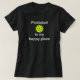 Pickleball é o meu feliz lugar, a camiseta negra das mulheres. Citação de picleball engraçada. O moderno design preto e branco apresenta uma bola amarela.
