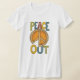 Design de torta de abóbora com sinal de paz e uma fatia desaparecida! O texto diz "Peace Out".