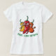 Camisa que retrata pimenta picante colorida vermelha, amarela e laranja.