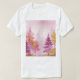 The image shows a watercolor painting of a forest with trees in shades of pink, purple, and gold.