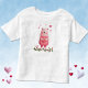 This cute pink teddy bear clutching a heart with a kawaii face looks adorable on assorted t-shirts for little ones. The bear is accented with more hearts and accent border of little strawberries. Cute or Valentine's Day or year round. Just choose your size and color.
