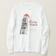Buon Natale t-shirts, roupas, cartas, bolsas e presentes de férias italianos Natale com fotografia da Torre de Pisa que se inclina a vestir um chapéu de Papai Noel com neve a cair.