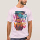 A design da camiseta apresenta a frase "Piscar os olhos de Whispers ricos" em letras multicoloridas, cada palavra em uma cor vibrante diferente, criando um design dinâmico e atraente para os olhos.