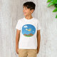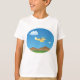 Um pequeno avião amarelo sobrevoando uma paisagem. Esta design parece realmente eficaz nesta camiseta
