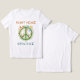 Esta camiseta apresenta um símbolo verde de paz vibrante florescendo com vinhas, flores e borboletas.