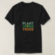 A design de camiseta centra-se na mensagem ambientalmente consciente "Plante mais árvores" em um esquema de multicores vibrante. Cada palavra poderia ser uma cor distinta representando a natureza (pensem em verduras da terra, amarelos da folha e um toque de azul-céu), ou as cores poderiam se misturar em um gradiente, simbolizando a interconectividade do ambiente.