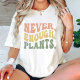 Esta camiseta apresenta um design de texto de Groovy que diz Nunca Chega de Plantas. O melhor presente de vegetação.