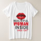 Diseño audaz y dramático que combina Labios de mujer en un vibrante rojo intenso, realista y texturizado, con detalles sutiles como manchas de labial, goteos y reflejos brillantes que lo hacen resaltar. El alto contraste crea un impacto visual impactante y moderno. Debajo, la frase "Beautiful woman inside and out." se presenta en una tipografía audaz y atrevida, complementando la actitud del diseño. Este estilo es perfecto para aplicaciones en camisetas, playeras y arte contemporáneo, transmitiendo confianza, elegancia y empoderamiento.