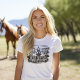 Camiseta Dust Settles. © Tees & Sweats na Zazzle. Esta camiseta tem a imagem de um cowboy montando seu cavalo no deserto e a frase "Poeira Assenta, Cowboys Não" nela.