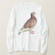 Uma t-shirt com um grande pombo vermelho isolado.