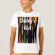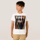 A camiseta deste miúdo tem uma design moderna do século médio de triângulos que se enfrentam se repetindo através da design.