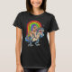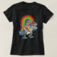 Camiseta Poodle Riding Dinossaur T rex Rainbow