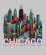 Estilo dos quadrinhos, pop de arte Chicago, linha do horizonte Illinois. Edifícios altos, arte de Chicago, lembrança de Chicago.