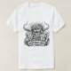 A terrifying yet fun Popcorn Day illustration showing a horned skeleton monster enjoying buckets of popcorn. High-contrast black and white artwork inspired by underground horror and metal aesthetics.