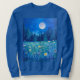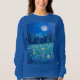Camisola numa paisagem aquática de um campo de flores silvestres e uma floresta escura sob a lua de cheio