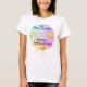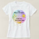 Esta camisa muito legal apresenta uma esfera pintada de aquarela em verde roxo, amarelo, rosa e azul com placas de tinta dourada. A tipografia diz: "ESTOU PRATICANDO DISTÂNCIA SOCIAL".