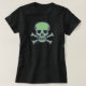 Camiseta preta de mulheres do crânio verde