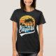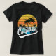Camiseta preta feminina com pôr do sol retrô vintage da Califórnia com palmeiras. Mostre o quanto você ama a Califórnia com este design de verão retrô de pôr do sol tropical e palmeiras.