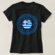 Camiseta preta feminina de Lefkada, Grécia com a bandeira nacional da Grécia dentro de um círculo de padrão grego antigo. Aproveite usar esta camiseta enquanto estiver de férias na bela ilha de Lefkada ou dê como lembrança de presente.