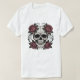 Camiseta preta masculina com caveira gótica e rosa