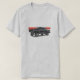 Rendição de um gasser 1957 preto de Chevy com as listras vermelhas atrás dele na camisa colorida.