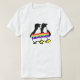 Dois pinguins marchando carregando um banner listrado LGBT chamado PRIDE!