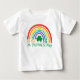 O bebê está pronto para comemorar a sua primeira Rua. Dia de Patrick com esta camisa colorida que apresenta um arco-íris brilhante e um shamrock verde com as palavras "a minha primeira Rua. Dia de Patrick"