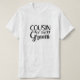 O noivo pode ter um tio que vai querer mostrar sua estatura no dia do casamento do sobrinho. O texto diz o COUSIN do GRUPO. O mesmo texto e cor se repetem na parte de trás dessa camiseta. O texto é uma imagem para que a cor possa ser alterada para qualquer um que você escolher.