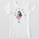 Esta camiseta é ajustado para a princesa. Uma princesa nova bonito com cabelo preto e os olhos marrons guardara uma varinha sparkling e veste uma tiara, um tutu roxo com uma camisa listrada preto e branco e partes superiores altas com dedos do pé brilhantes. É cercada por borboletas roxas. Você pode adicionar o texto se você gosta.