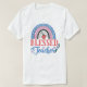 Este design apresenta uma t-shirt branca com a palavra "BLESSED" numa fonte rosa estilizada. Abaixo dela, a palavra "Professor" está escrita em um roteiro azul cursivo. A design inclui um gráfico colorido arco-íris, um gráfico vermelho de maçã e um gráfico azul de caneta.