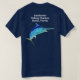Camiseta do promo da pesca, com gráficos de um grande espadarte colorido e de um texto feito sob encomenda branco. Personalize o texto, na parte dianteira e na parte traseira da camisa, para ler o que você quer. Excelente como a propaganda, as lembranças, e os presentes.