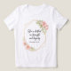 Camiseta macia com bela letra floral de Provérbios 31:25 - roupa de fé elegante para confiança e inspiração diárias.