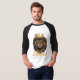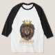 Esta camiseta maneve 3/4 apresenta uma impressão dupla, em negrito, com letras amarelas e brancas, exibindo a escritura bíblia "Proverbs 30:30" e citando a face de um leão vestindo a coroa de um rei acima no tema baseado na fé. Eles têm um corpo branco ou cinza com capas e colarinho correspondentes com agulha dupla coçados de baixo e mangas para durabilidade de longa duração.