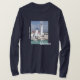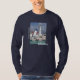 Camiseta básica de manga comprida marinho masculino com imagem de um farol e torre inclinada em Puerto Morelos, México. Veja toda a coleção de Roupa do México na seção ROUPA.