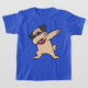 O presente de toque ligeiro do tshirt do pug que caracteriza um cão do pug dos desenhos animados que toca em uma dança engraçada levanta com a língua que cola para fora. Camiseta animal de toque ligeiro de um cão de toque ligeiro do pug engraçado. A solha é um movimento simples da dança do hip-hop como um gesto do triunfo e do playfulness.