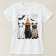 Três Cheers por Felines Spooky! Prepare-se para um belo Dia das Bruxas com nossa charmosa design de "Três Gatos de Halloween". Esta ilustração adorável mostra um trio de gatos pretos vestidos em seu melhor festivo: um gato fantasma brincalhão, um gato na moda brutal esportivo de um chapéu laranja e gravata arco, e um charmoso gato múmia envolto em bandagens antigas. Cercado por elementos clássicos do Halloween, como morcegos voadores, estrelas cintilantes, e uma teia de aranha balançante, esta design captura o espírito balbucioso da estação. Com suas linhas limpas, cores vibrantes e personagens irresistíveis, é perfeito para qualquer um que ama gatos, Halloween, ou ambos! Traga uma alegria assustadora para o seu guarda-roupa ou decor em casa esta queda.