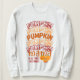Camiseta personalizável PUMPKIN MAMA de ação de graças com TEXTO PERSONALIZÁVEL, mostrando a palavra PUMPKIN em um leve arco nas cores de queda do outono. Há um gráfico de três abóboras bonitinhas na parte inferior direita e abóboras doces de fofinho. Na parte inferior do texto lê EM TODAS AS COISAS DÁ OBRIGADOS, que você pode PERSONALIZAR com os nomes de seus filhos. Um suéter autóctone ideal para vestir quando se abaixa até noites confortáveis em frente ao fogo.