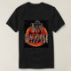 Este desenho gráfico, foi editado com fotos, para aprimorar, essa imagem de Abóbora Menacing, ressonando, em cor laranja, amarela, preta e cinza - com Feliz Halloween, Emblazonado, na frente, em letras macabras e brancas.