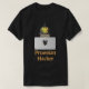 É um design de trocadilhos. Se há hackers russos, por que não há hackers prussianos? Parecem quase o mesmo. Há um homem vestindo óculos que está olhando para seu laptop. Ele também está vestindo um capacete prussiano e a parte do texto diz 'Hacker prussiano' (escrito com fonte alemã).