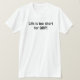 A escrita na parte dianteira diz, a "vida é demasiado curta para QRP." É escrevendo sobre para trás opcional. Coloque seu callsign, nome, o outro texto, ou o vazio da licença. A camisa, os estilos do texto e as cores são opcionais.