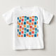 Esta camiseta bebê tem um design geométrico de quadrados na tangerina, papoila, coral e tons espalhados com seus contornos.