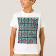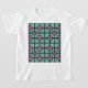A camiseta desta criança tem um design de arte de sobrepor quadrados concêntricos em cor de rosa e cor-de-rosa.