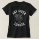 Esta camisa apresenta um design gráfico impresso a tinta branca. A design inclui a frase "ANY DEN SUNDAE" numa fonte ligeiramente curvada e estilizada. Abaixo do texto está uma ilustração de um sundae em um vidro enraizado. O sundae tem vários pedaços de sorvete, reentrâncias, e um cone de waffle. A ilustração é feita em um estilo simples e esboçado.