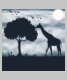 Entra num sonho à luz da lua, onde uma girafa seduz de uma árvore solitária sob estrelas brilhantes, com pássaros dançando no céu índio. Maleitas névoas rodopiam esta cena encantadora, misturando a maravilha da vida selvagem com magia celestial - perfeita para amantes da natureza e sonhadores.